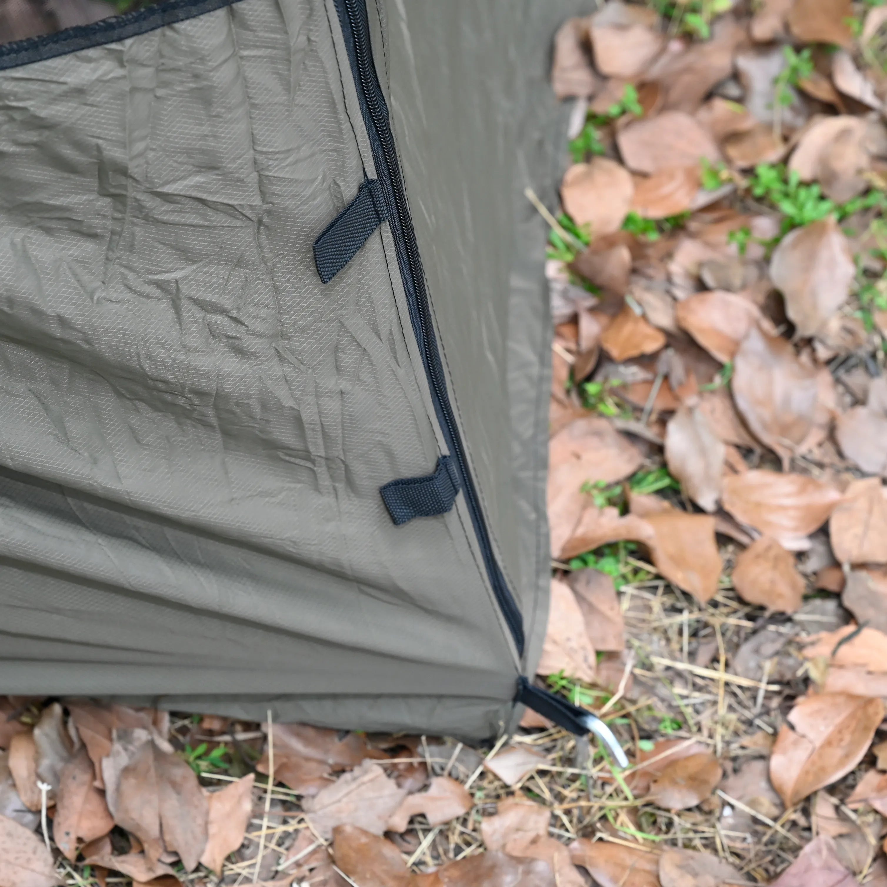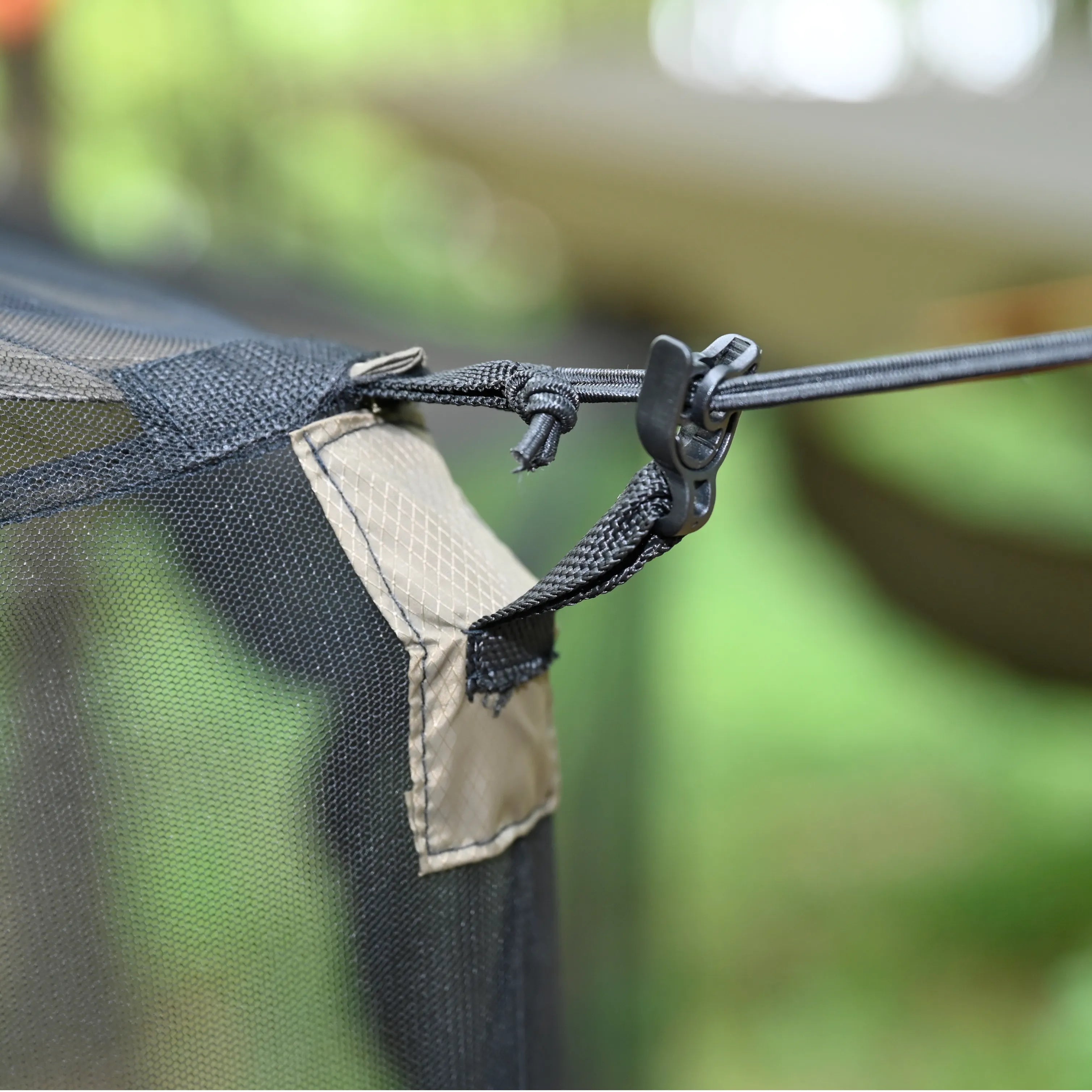 - 360° Insektenschutz für Tarp-Camping: Hergestellt aus extrafeinem 1-mm-Polyesternetz und einem PU-beschichteten Nylon-Ripstop-Boden , hält dieses Fliegengitterhaus Mücken, Sandfliegen und andere Schädlinge fern und bietet gleichzeitig Atmungsaktivität. Perfekt für Hängematten-Camping, Picknicks oder als Unterstand unter Ihrer Onewind 11'/12'-Plane .