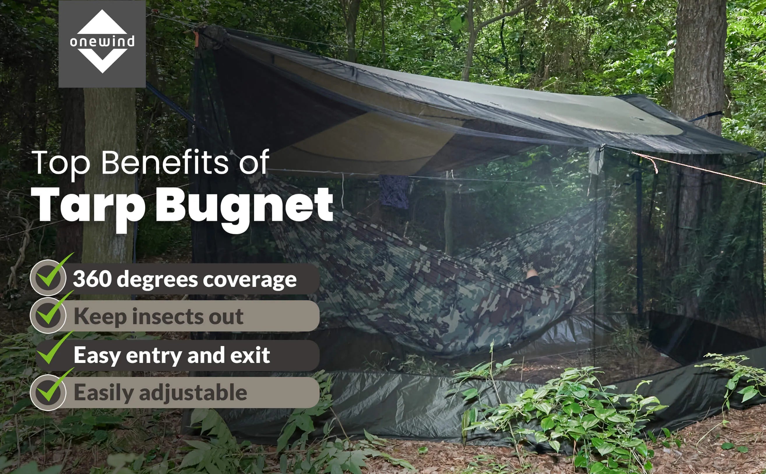 Egal, ob Sie eine Wanderung unternehmen, ein Nickerchen in der Hängematte machen oder ein Wochenende unter den Sternen verbringen, das Onewind-Moskitonetz für Tarp-Camping bietet Ihnen Seelenfrieden, Schutz und puren Outdoor-Komfort.