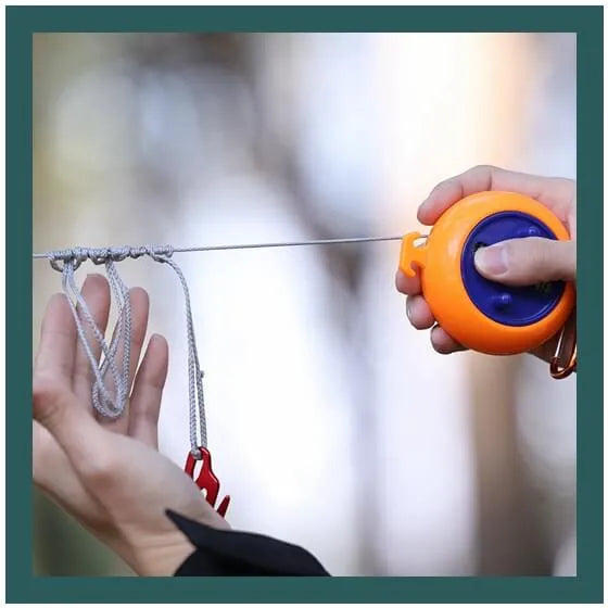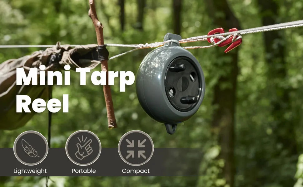 - Verwicklungsfreies Mini-Rollendesign: Die kompakte Rolle verfügt über einen rotierenden Nockenmechanismus, um das Kabel nach dem Gebrauch ordentlich aufzuwickeln, wodurch Verwicklungen vermieden werden und die Aufbewahrung Ihrer Campingausrüstung einfach und bequem wird.