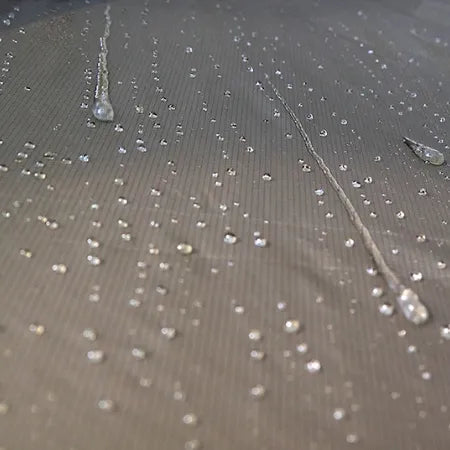1.1oz silicone/PU-coated silnylon (3000mm waterproof) repels rain, wind, and UV. Ultra-durable for storms or sun.