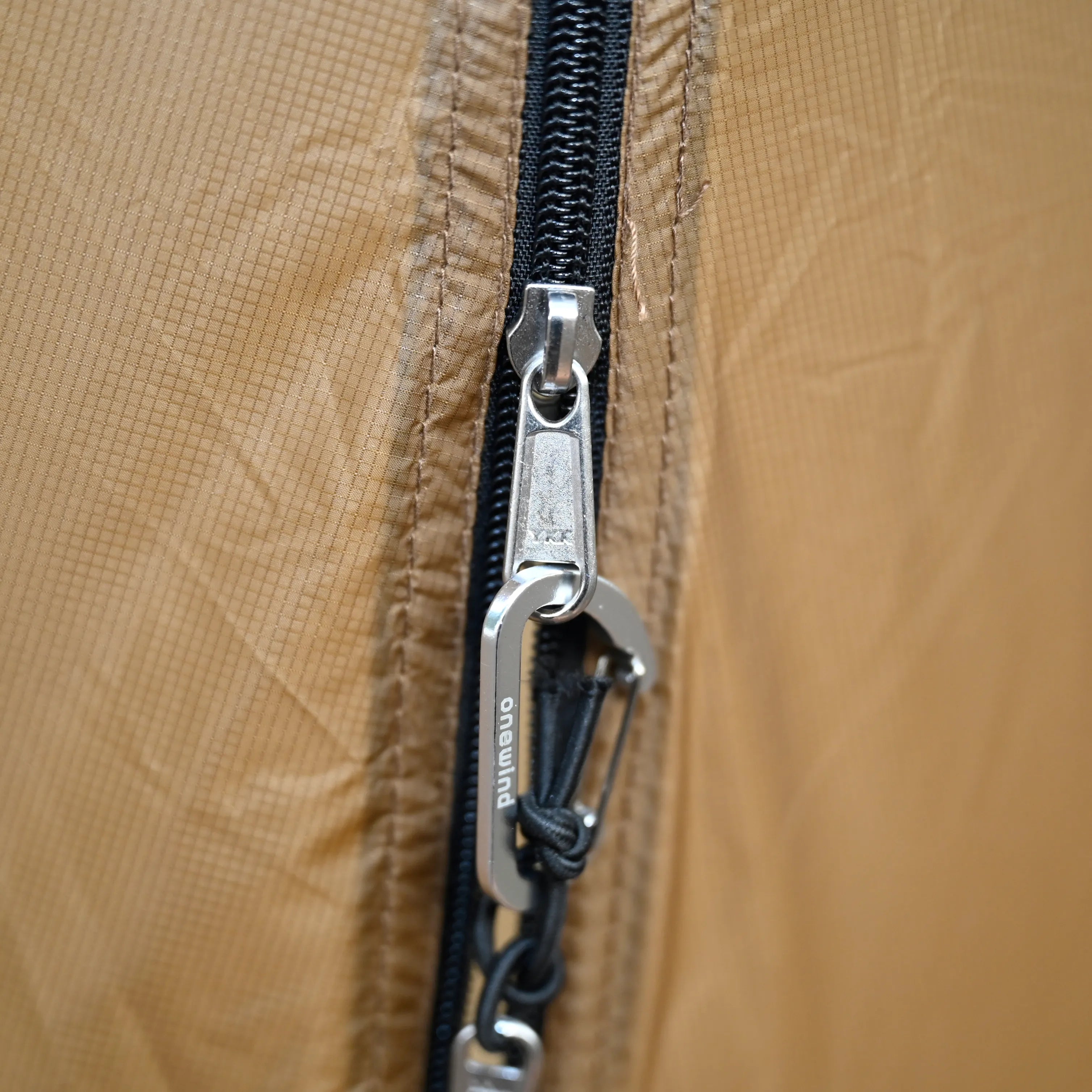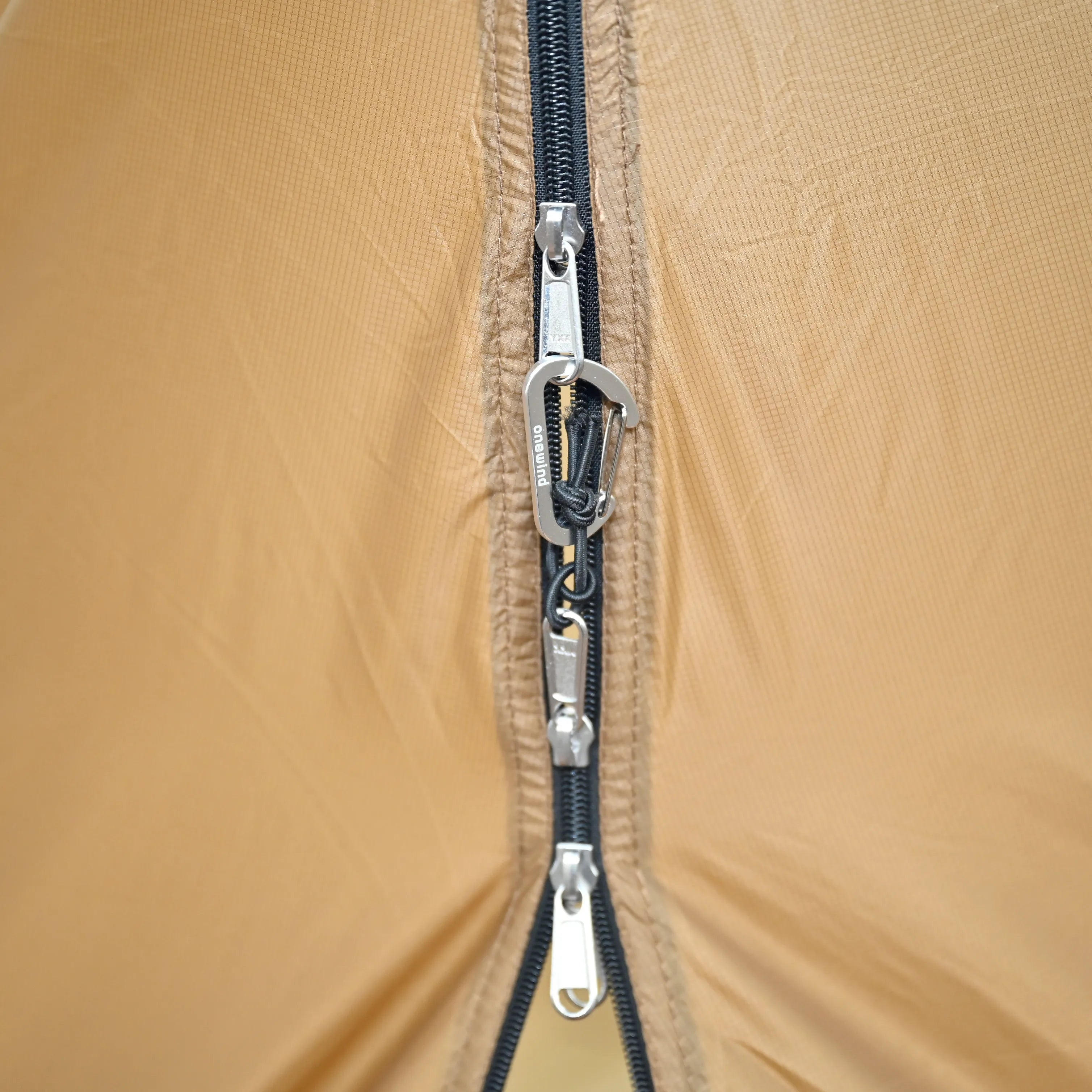 YKK zippers integrate with hammock straps for seamless tarp-to-tree setups.