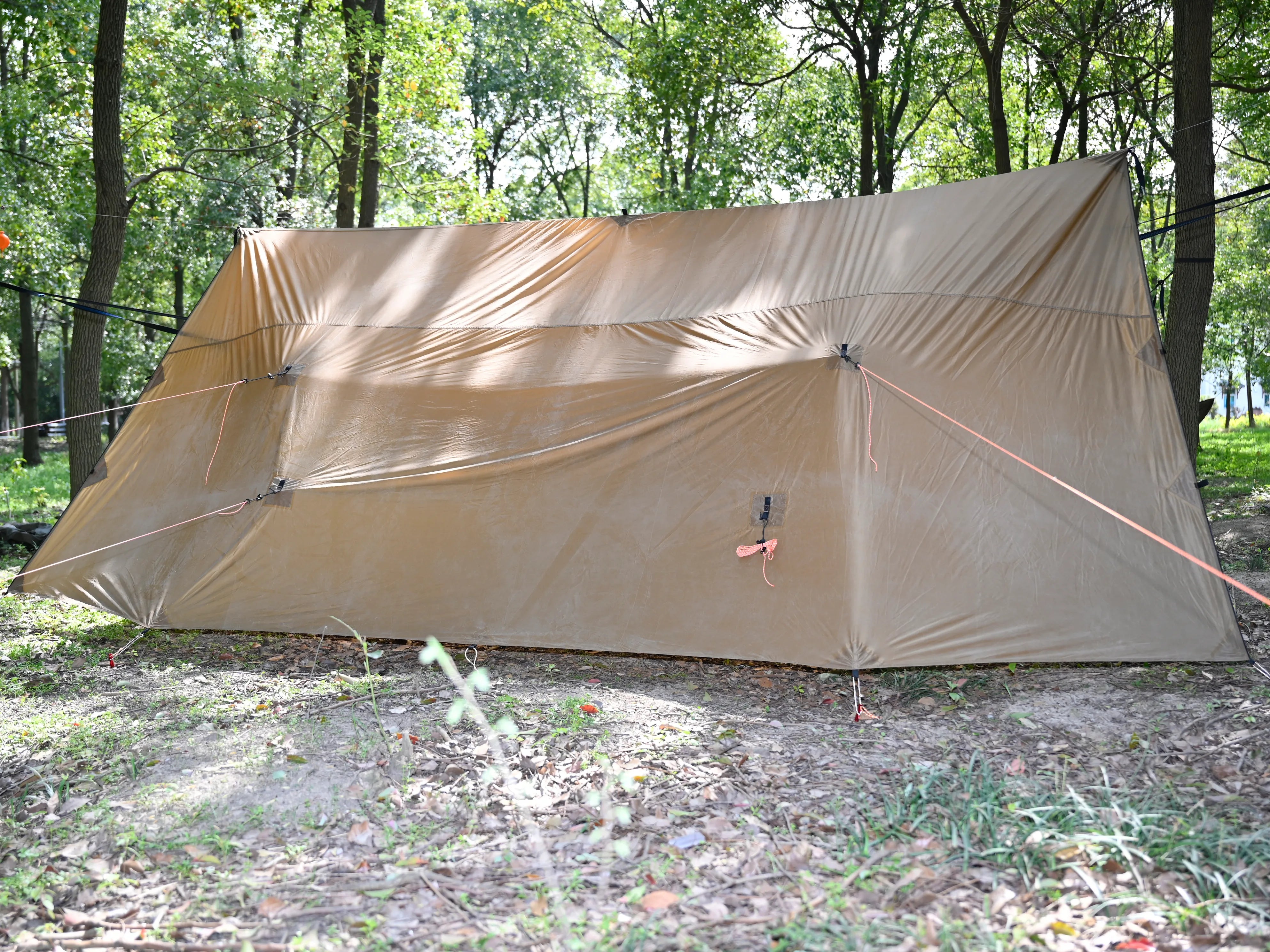 • Durable & Adventure-Ready – Engineered with rugged Silnylon, reinforced seams, and aluminum hardware, this tarp tent withstands sun, wind, and abrasion. A reliable choice for thru-hikers, campers, or survivalists seeking a lightweight, multi-use shelter.