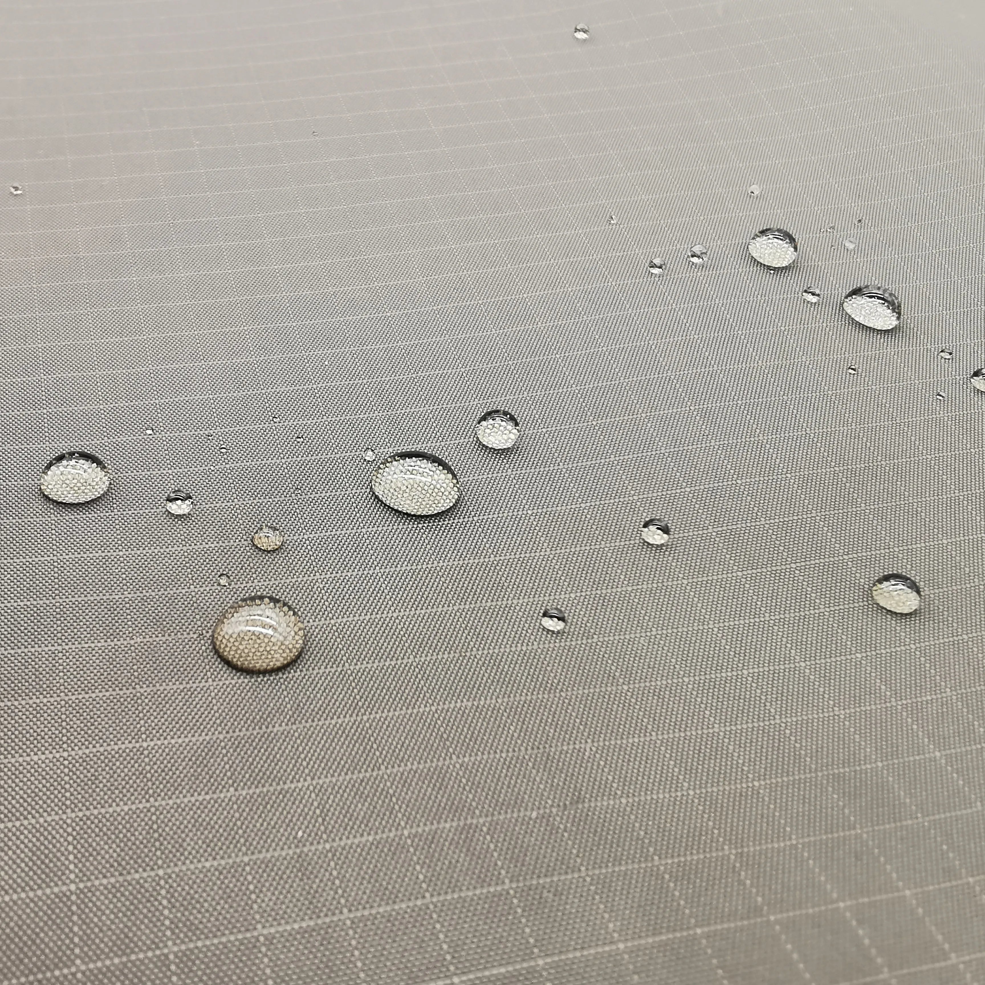 Silnylon ripstop + PU coating block rain with 3000mm hydrostatic rating.