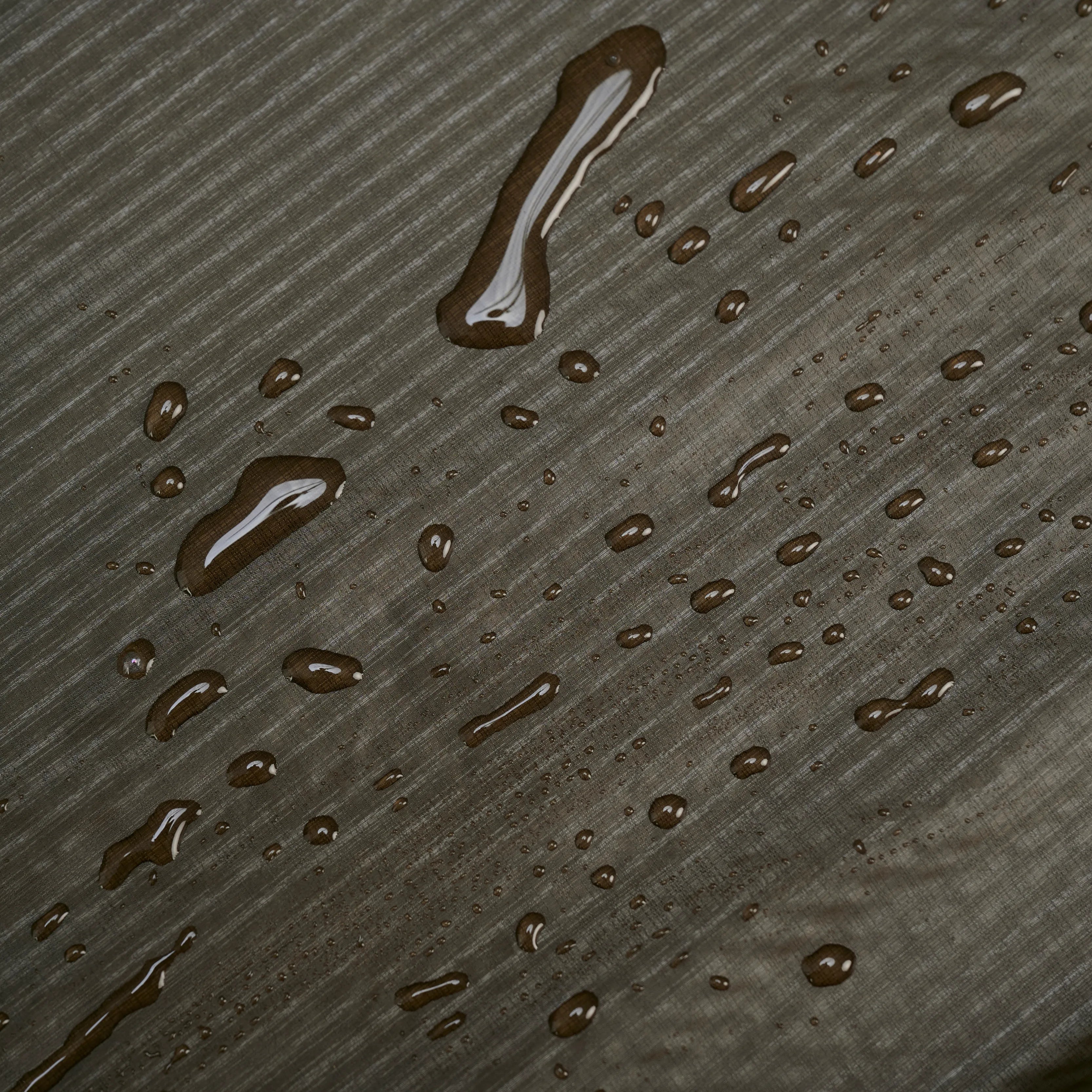 1.1oz PU-coated ripstop nylon blocks rain, snow, and morning dew. Submerge-proof!