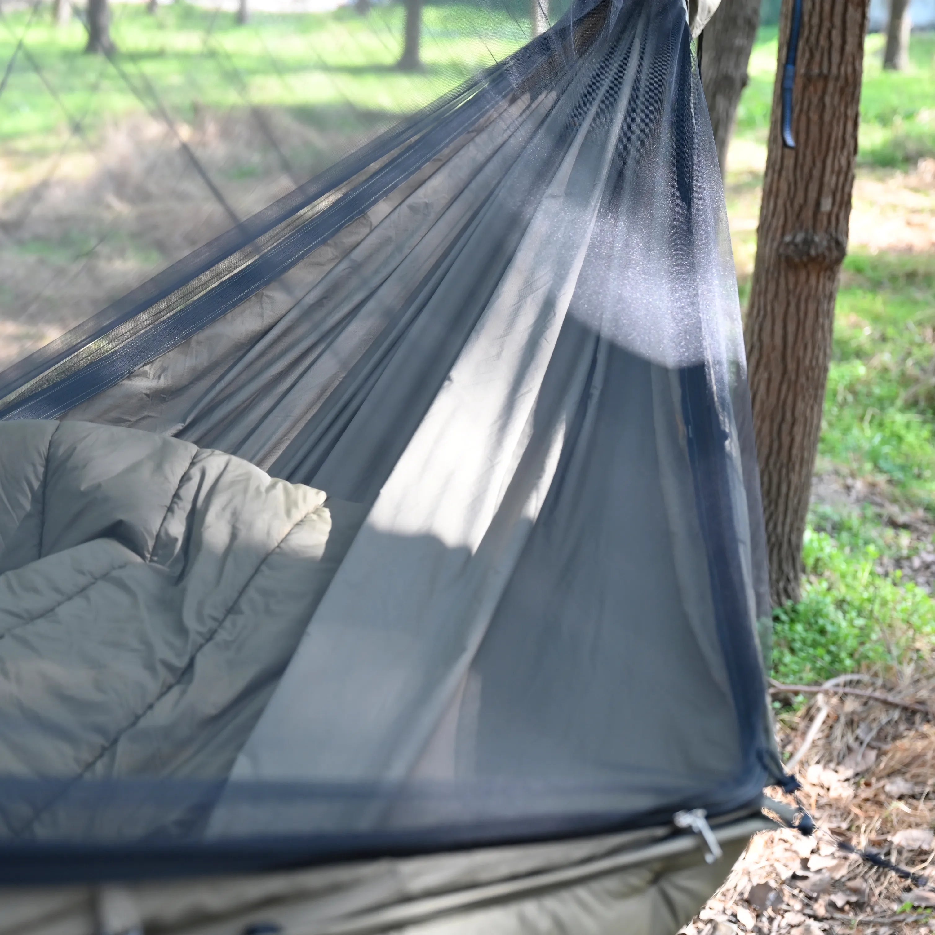 Meet the Onewind® Tempest 11' Zipper Camping Hammock—a 4-season fortress with built-in bug net and 500lb strength for adventurers who crave flat sleeps,bug-free naps, and all-weather confidence!