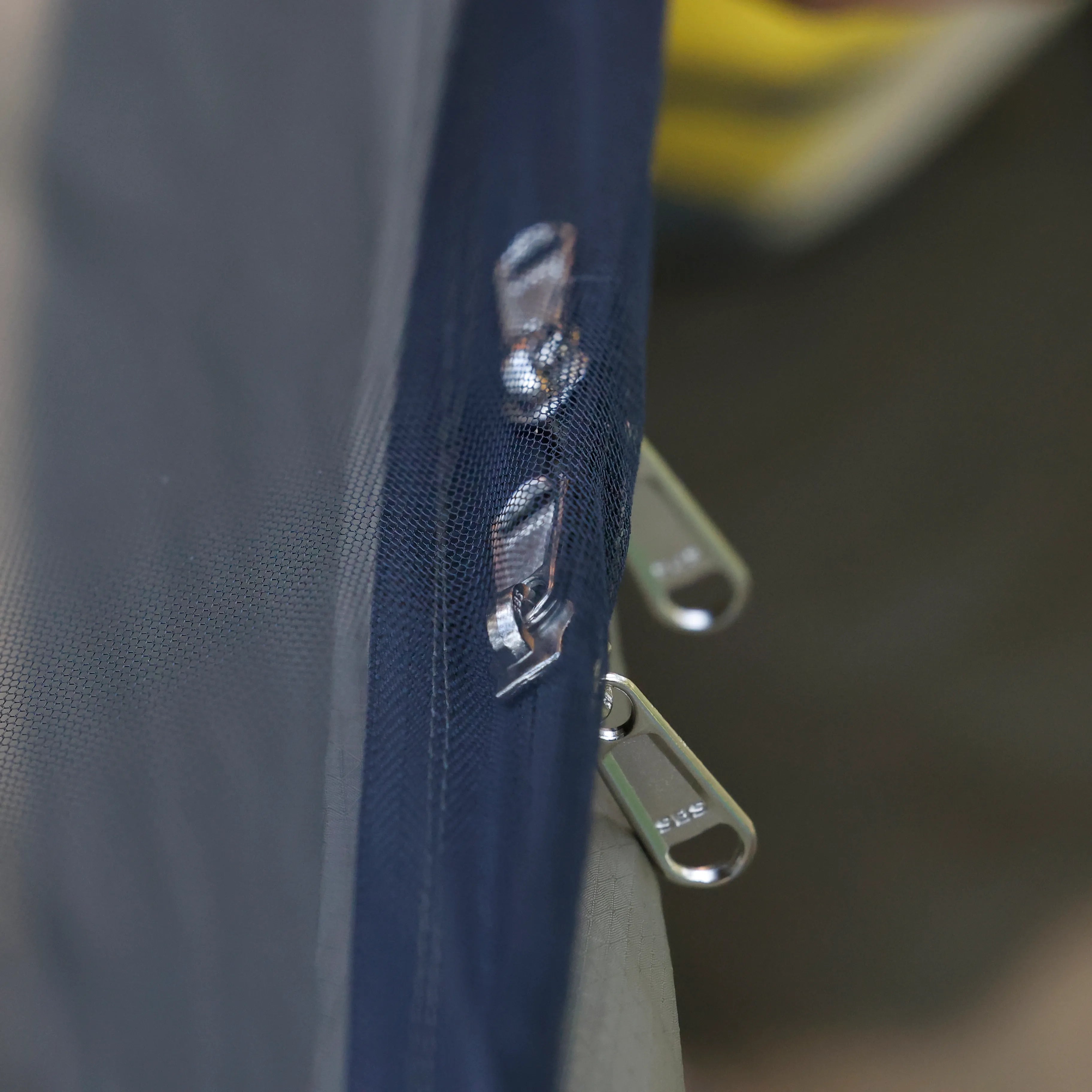 Two-way zipper allows entry/exit from either side. Securely seals bugnet or stows it neatly when not needed.