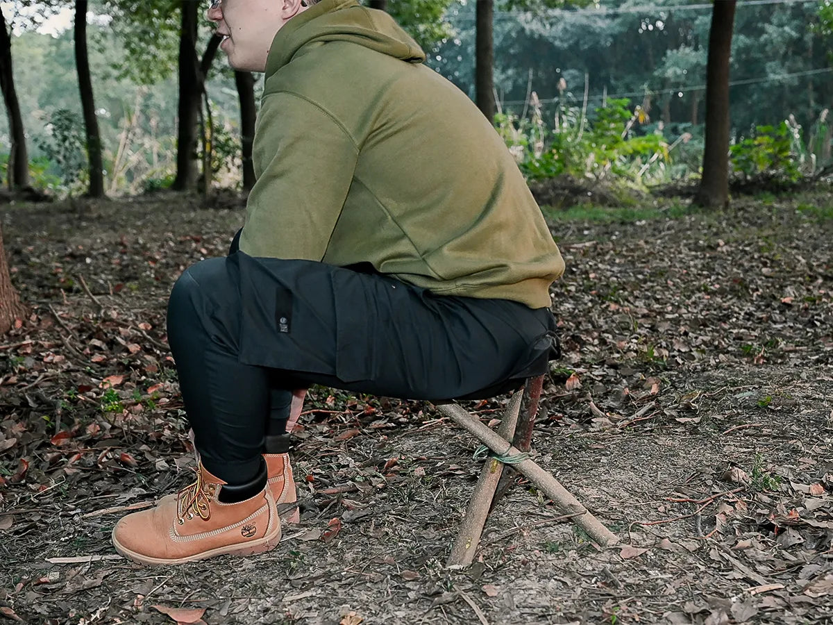 - DIY Tripod Setup Using Natural Sticks: No sticks included—simply use sturdy branches or sticks from your surroundings to create a secure tripod base. The reinforced pockets hold the legs firmly, letting you assemble a comfortable seat anywhere in minutes.