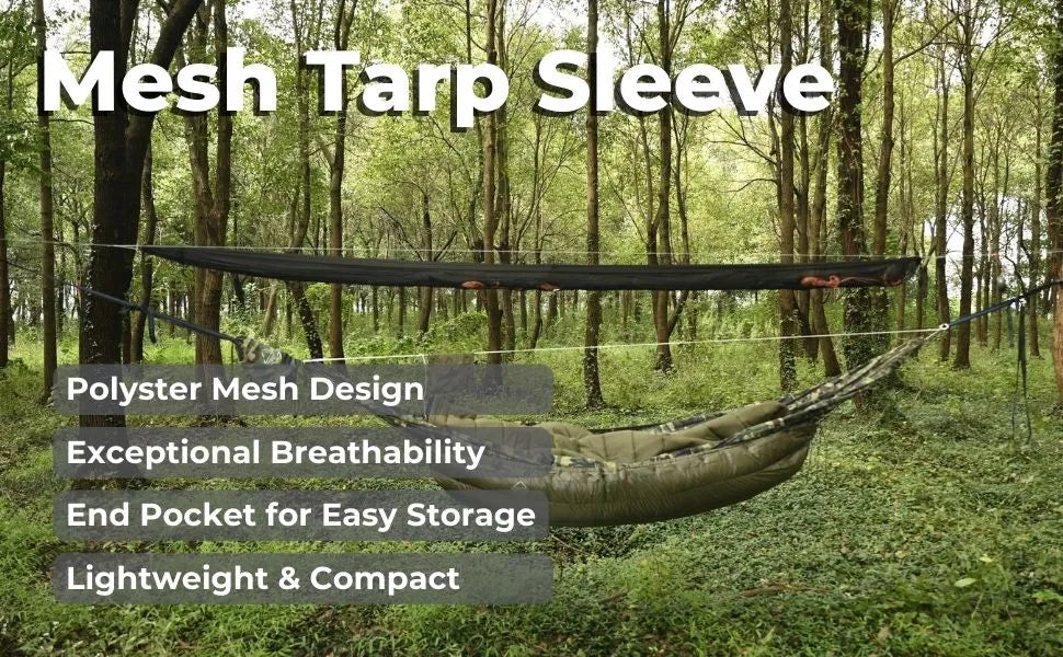 YOUR TARP’S AIR CONDITIONER12’ mesh snakeskin sleeve that dries tarps mid-storm while slashing setup/pack time to under 10 seconds. Built for hikers who want mold-free gear and ultralight simplicity!