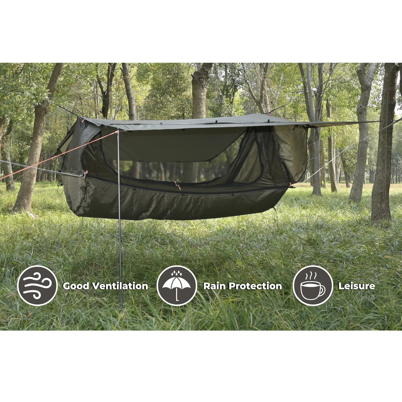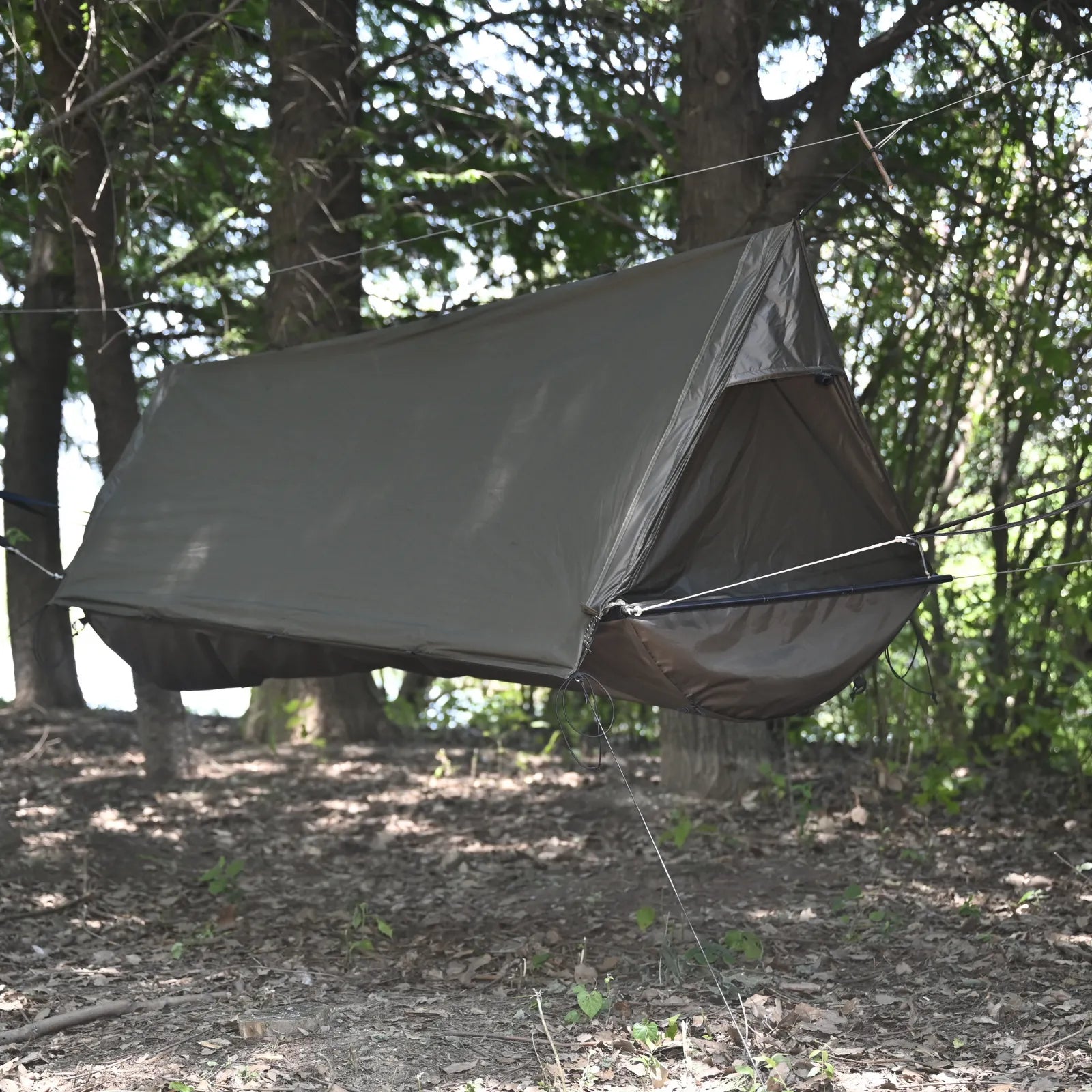 - Spacious Bivy Style: Unlike cramped bivies, this structure provides ample headroom to sit up, change clothes, and organize your gear comfortably. Whether on a rocky peak or a sandy beach, this lightweight camping tent hammock ensures you always have a safe, dry place to sleep.