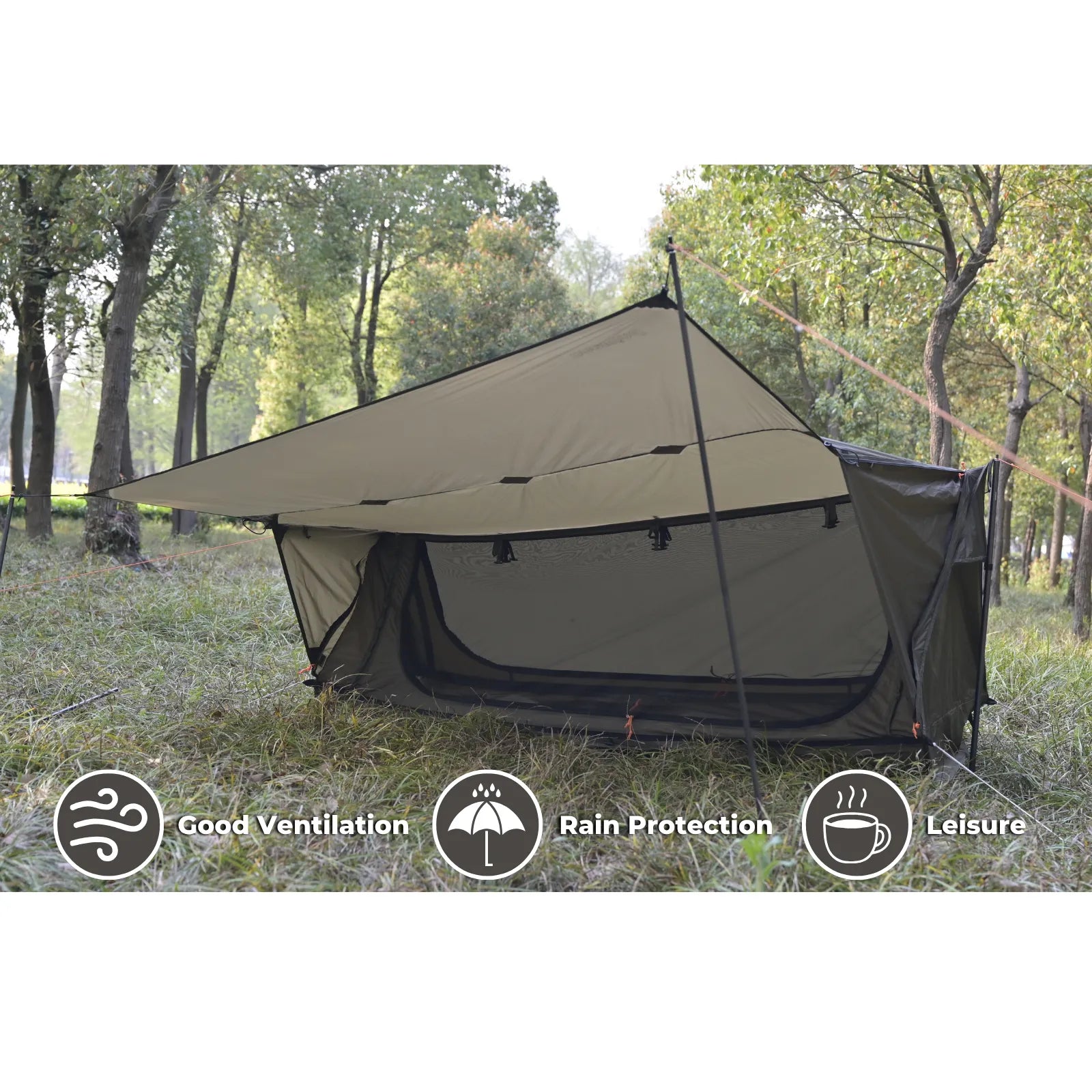 Side panels block wind-driven rain and splash, adding privacy and protection for hammock or 1-person tent mode.