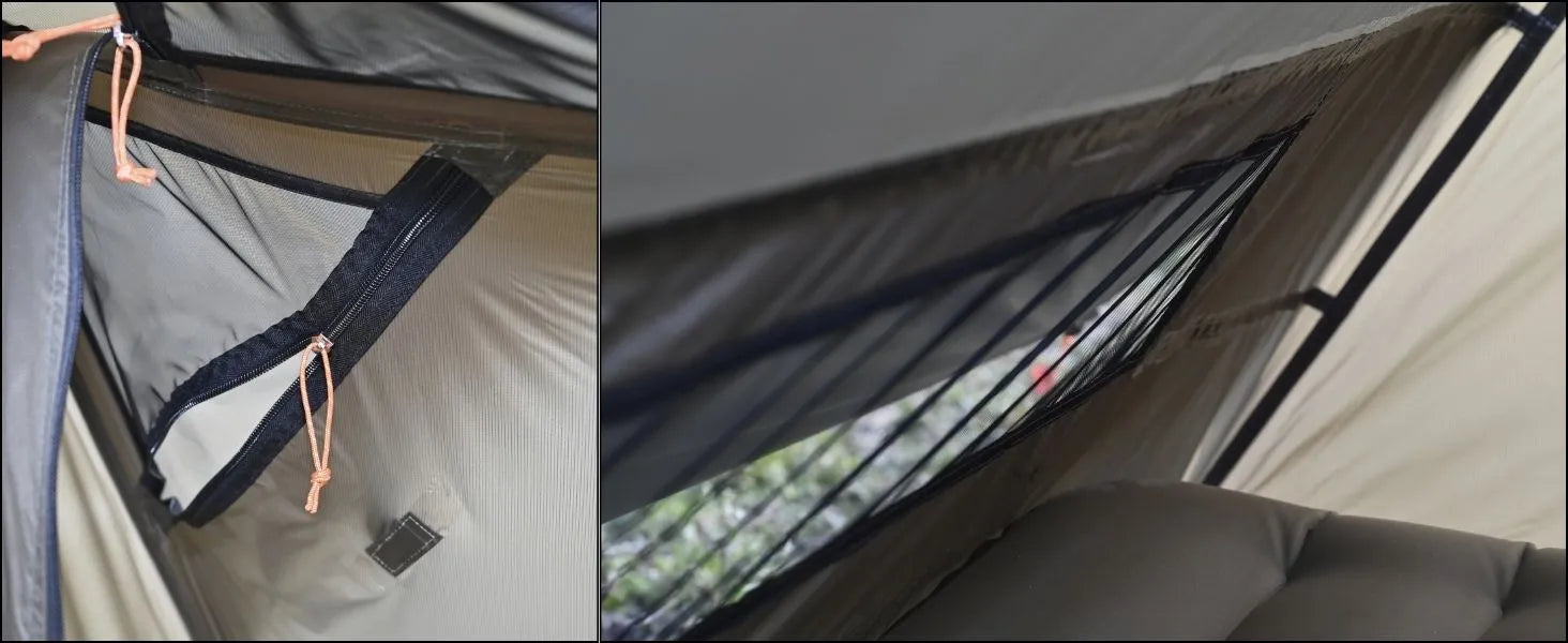 2. Super Ventilation: Equipped with 3 mesh vents, including a no-see-um mesh door and rear ventilation, it eliminates condensation while keeping bugs out.