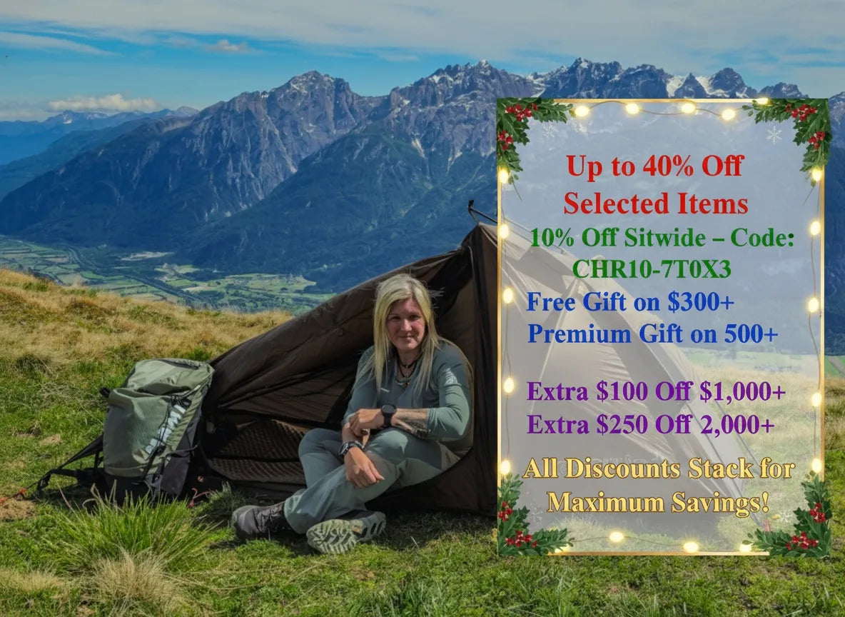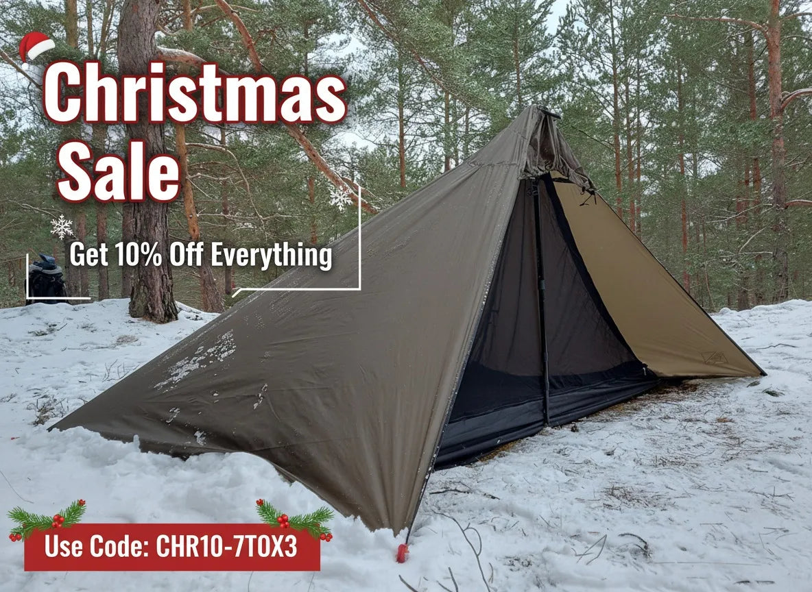 • Odolná konštrukcia voči počasiu: Vyrobený z 1.1oz silnylonu (3000mm) a 40D nylonovej podlahy (5000mm), je navrhnutý tak, aby vás udržal v suchu aj pri vetre a daždi.