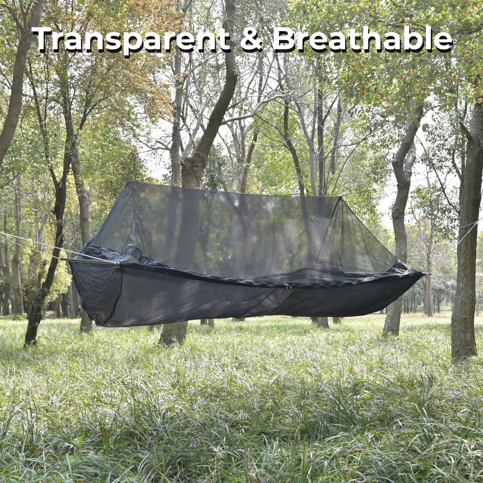 Crafted from 20D monofilament nylon, the hammock bed is ultra-light, silky-smooth, and semi-transparent. That means: