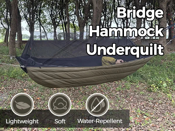 - Custom Fit for Bridge Hammocks: Specifically designed for the Onewind® Crystal Bridge Hammock, this underquilt offers a perfect fit and full coverage for bridge-style hammocks. Enjoy a draft-free, insulated sleep system that eliminates cold spots and maximizes comfort during hammock camping.